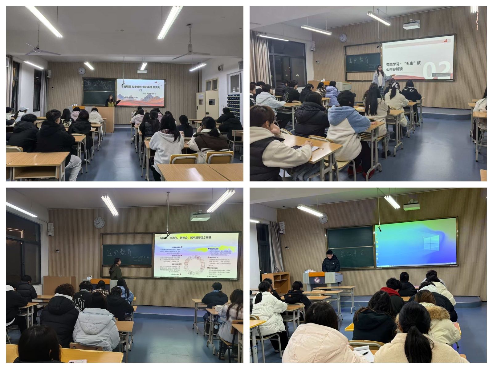本次活动以多样化形式展开,各新生班级灵活统筹资源,由辅导员牵头,团总支学生骨干、团支书积极参与主讲。活动中,既有条理清晰的专题讲解,带领新生系统梳理“五史”发展脉络,感悟百年征程中的伟大成就与宝贵经验;也有热烈深入的班级研讨,同学们结合自身感悟各抒己见,在思想碰撞中深化对历史的理解;红色故事分享环节里,一个个鲜活的人物、一段段感人的事迹,让新生们接受了深刻的精神洗礼;知识问答环节则以趣味互动的方式,检验学习成果,激发新生学习“五史”的积极性与主动性。