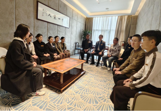 在爵乐府酒店,刘智兴和康晓媛两位老师与酒店高层和旅游管理专业10位在岗实习生进行了深入座谈。会上,实习生们逐一反馈了实习进展、收获与面临的具体问题。刘智兴老师认真倾听同学们的实习感悟,并鼓励大家珍惜此次宝贵契机,躬身实践,将理论知识与岗位要求紧密结合,在实干中淬炼专业本领、实现全面发展。康晓媛老师对实习生们展现出的积极工作态度和专业精神给予肯定,并就大家提出的问题和困惑,结合行业实际与职业发展路径给予了细致解答与指导。此外,酒店管理层表示,校方的深度参与和关怀为实习项目的顺利开展提供了重要支持,并期待未来加强合作。