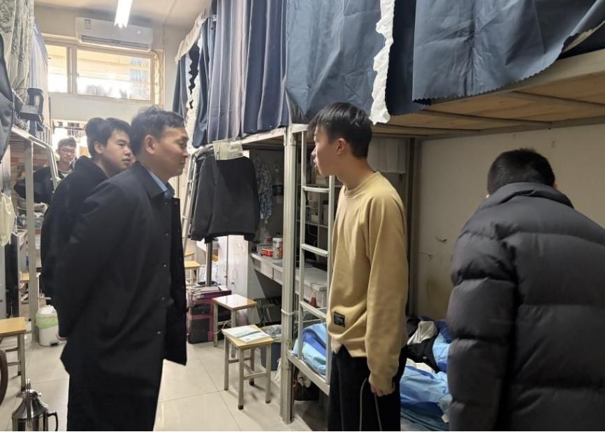 每到一间宿舍,师生亲切交流,耐心讲解冬季防火、用电安全、防寒保暖等知识,提醒同学们增强安全防范意识,养成良好卫生习惯。引导学生树立“安全无小事”理念,养成良好用电、卫生及上网习惯。