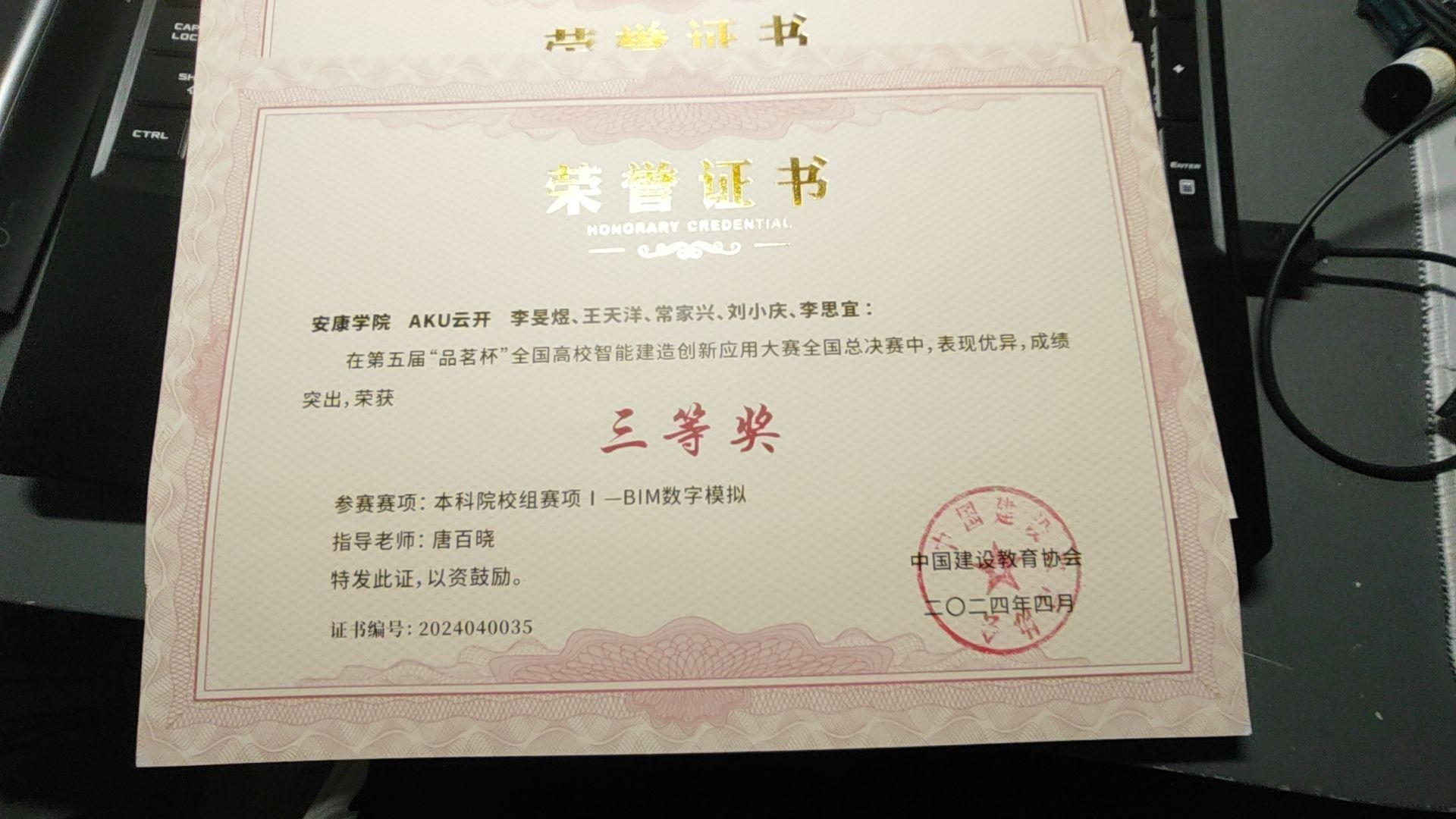 第五届“品茗杯”全国高校智能建造创新应用大赛三等奖